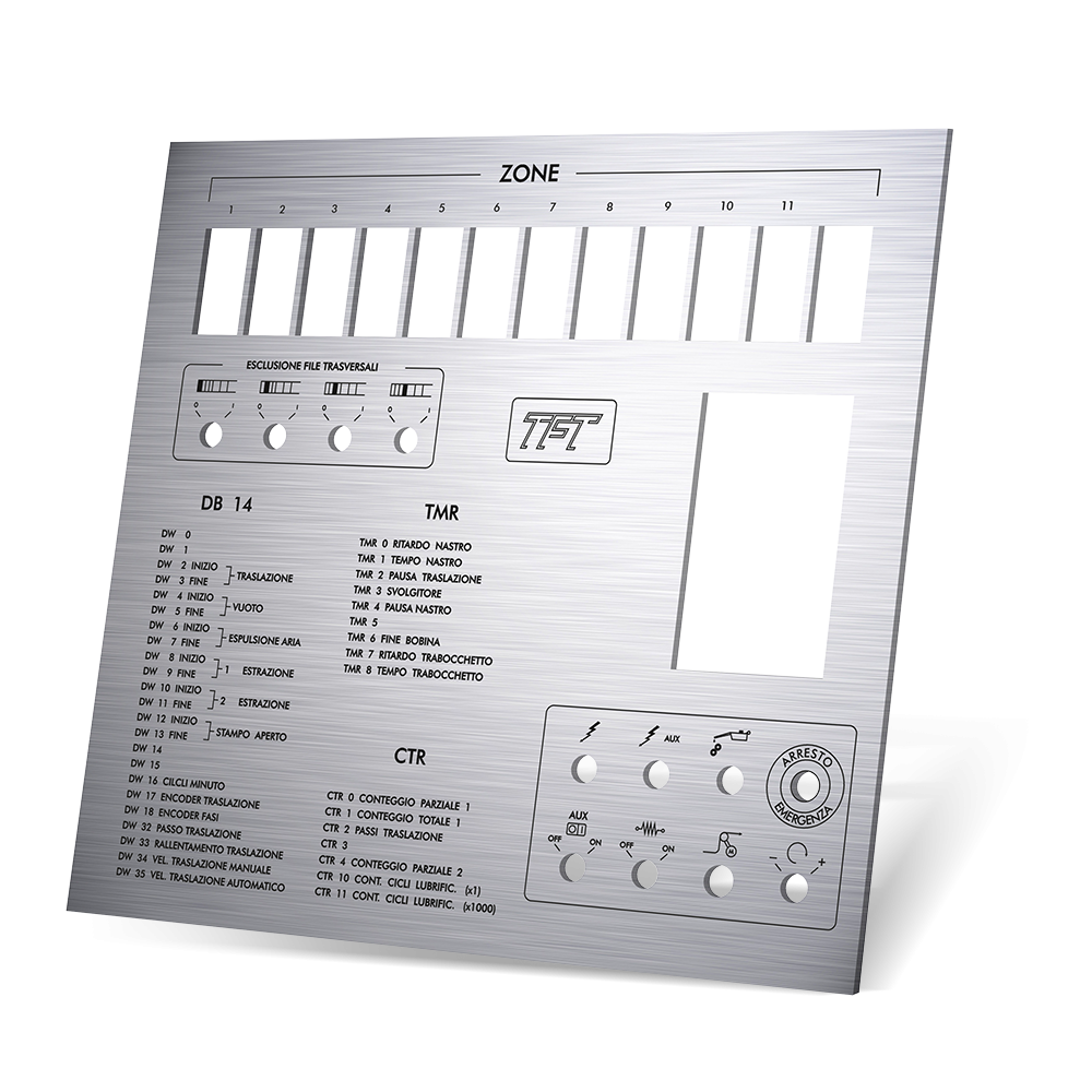 Libe realizes custom synoptic panels in aluminum, steel and plastic materials such as Plexiglass, Polycarbonate, Abs, generally employed to house the electrical and electronic components of control panels for electronic equipment, planks also valid for the needs of individual electrical systems. The realization is carried out by means of chip removal engraving systems both on the construction and the customization sides. Thanks to thirty years of experience, each solution is conceived starting from a design and made to size for each individual Customer.