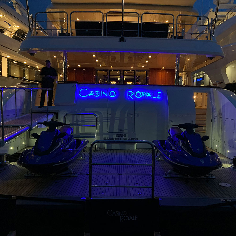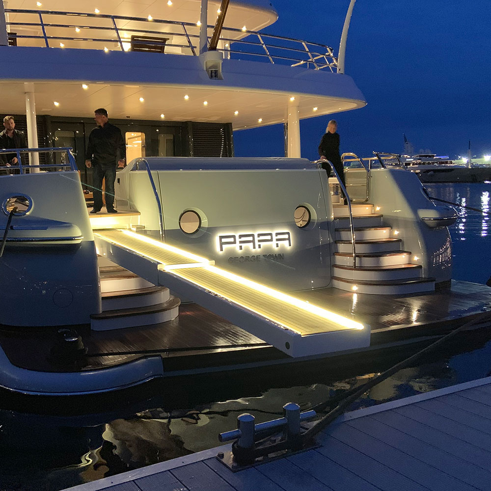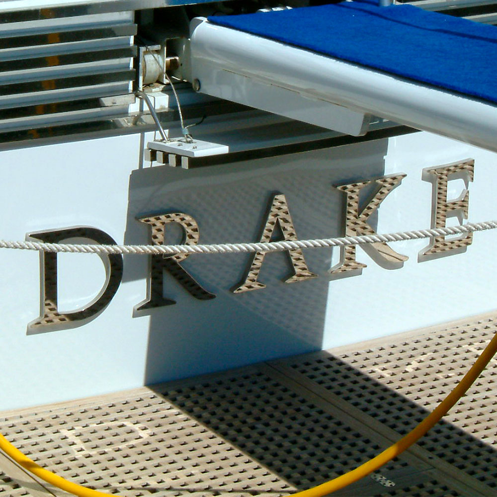 We create shipyard logos or boat names employing materials such as anodized anticorodal aluminum or stainless steel (aisi 316 L) in glossy or satin finish.