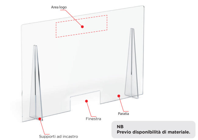 Il divisorio protettivo è indicato per le situazioni in cui l’operatore è a stretto contatto con la clientela. Protegge fornendo una copertura totale, chiara e stabile, assicurando all’operatore la possibilità di interazione non escludendo la schermatura da possibili contagi.