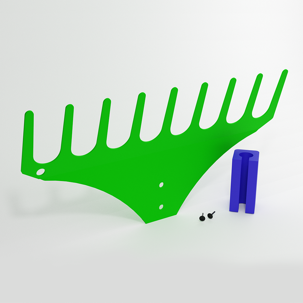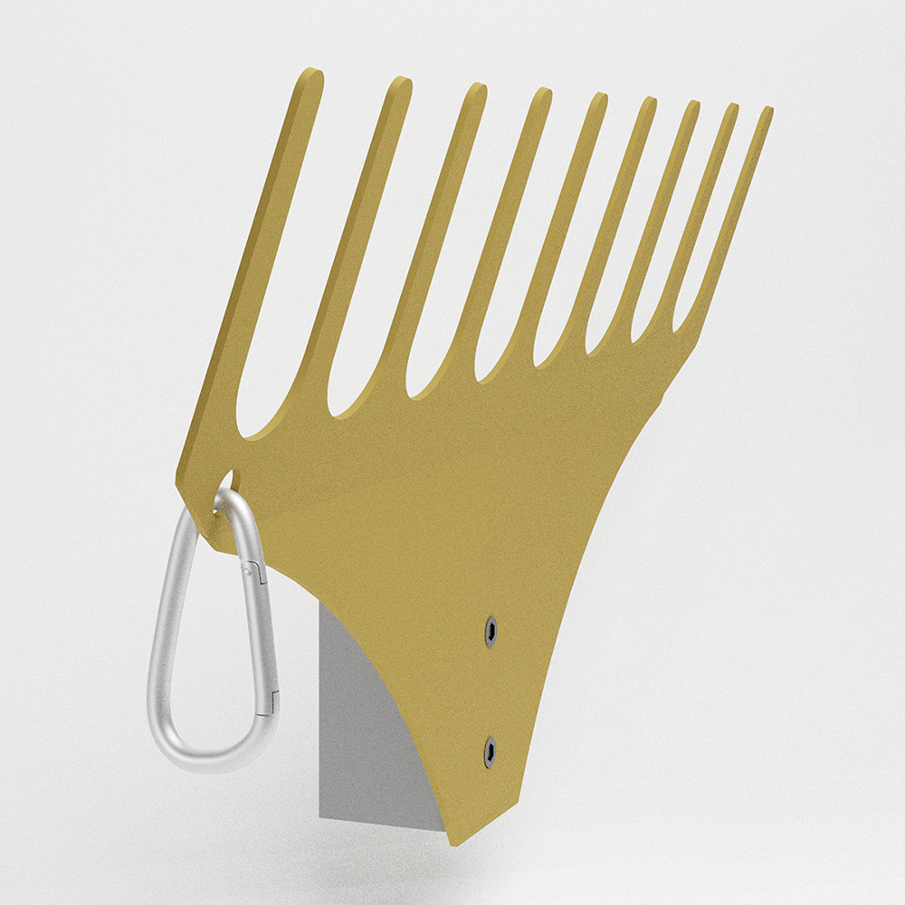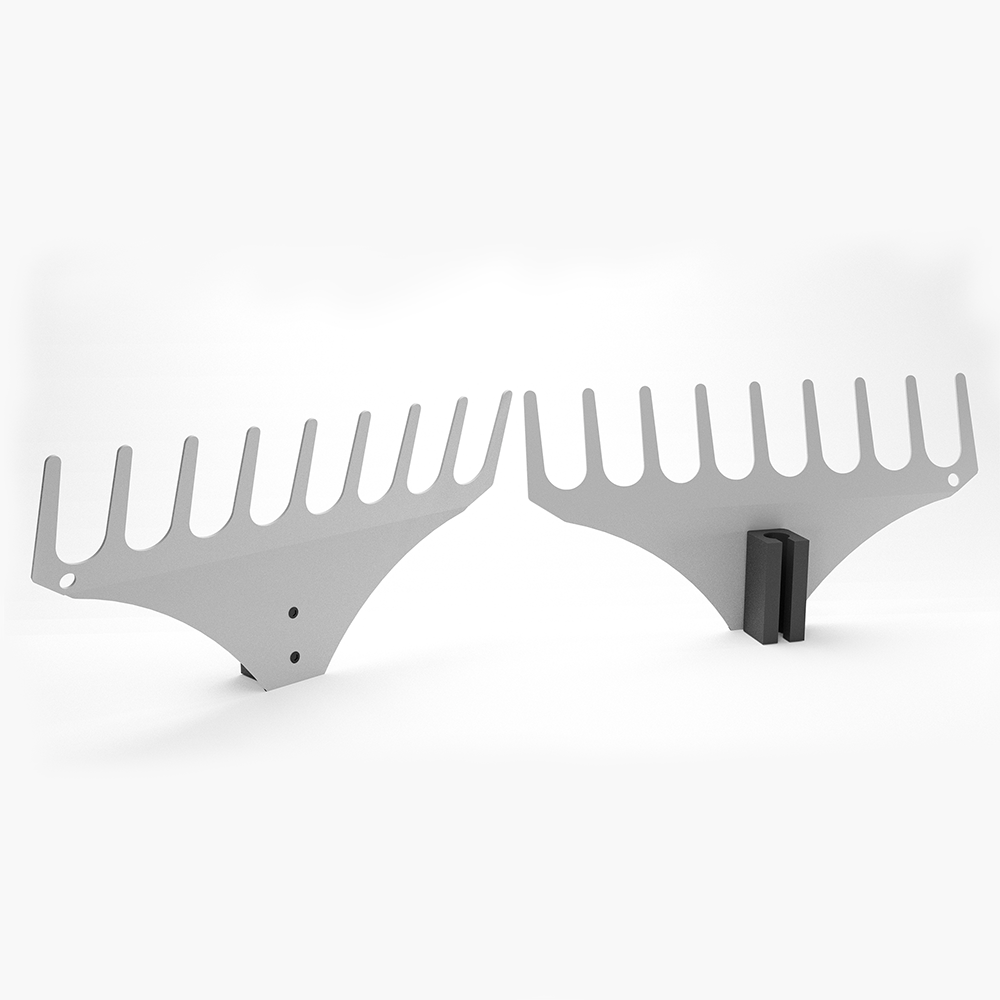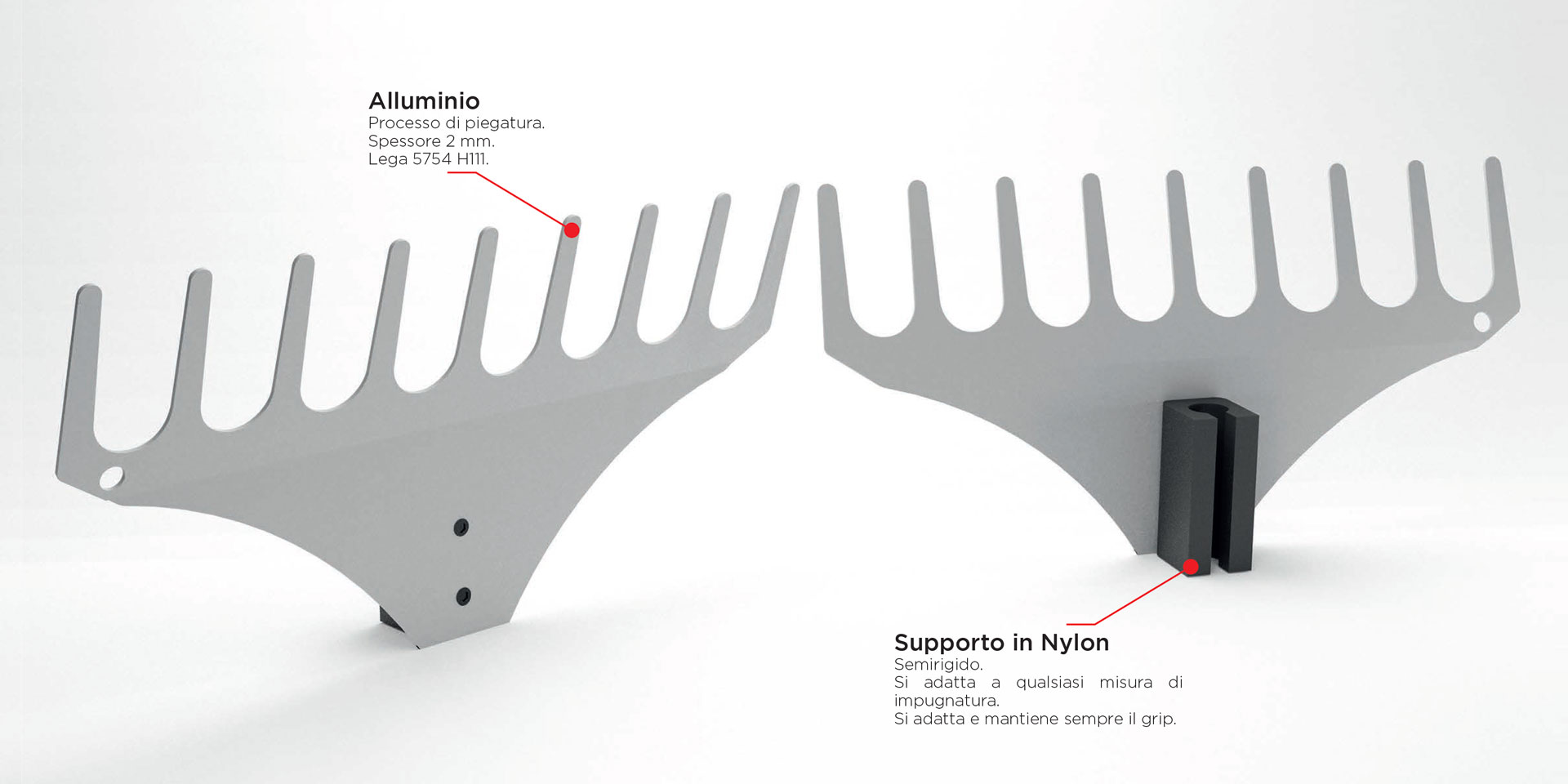 • Associazione/Circuito: personalizzazione della forma, integrando la sagoma del logo in quella del rastrello, ed eventuale personalizzazione con il logo mediante incisione laser o stampa digitale diretta UV.